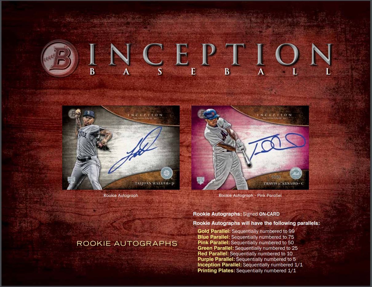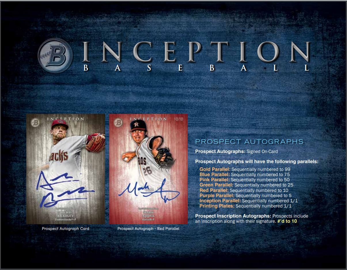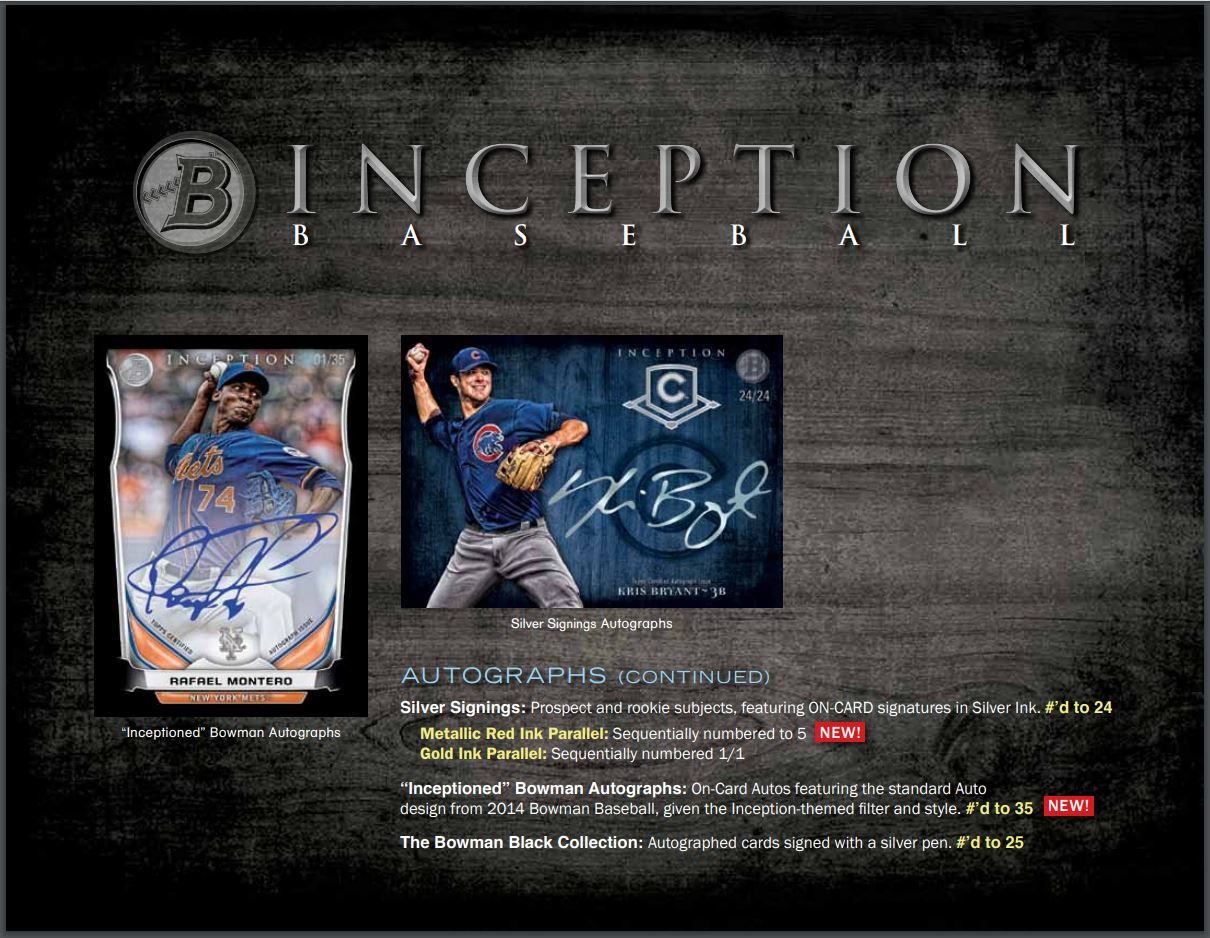“Inceptioned” Bowman Autographs: On-Card Autos featuring the standard Auto design from 2014 Bowman Baseball, given the Inception-themed filter and style. #’d to 35 NEW!