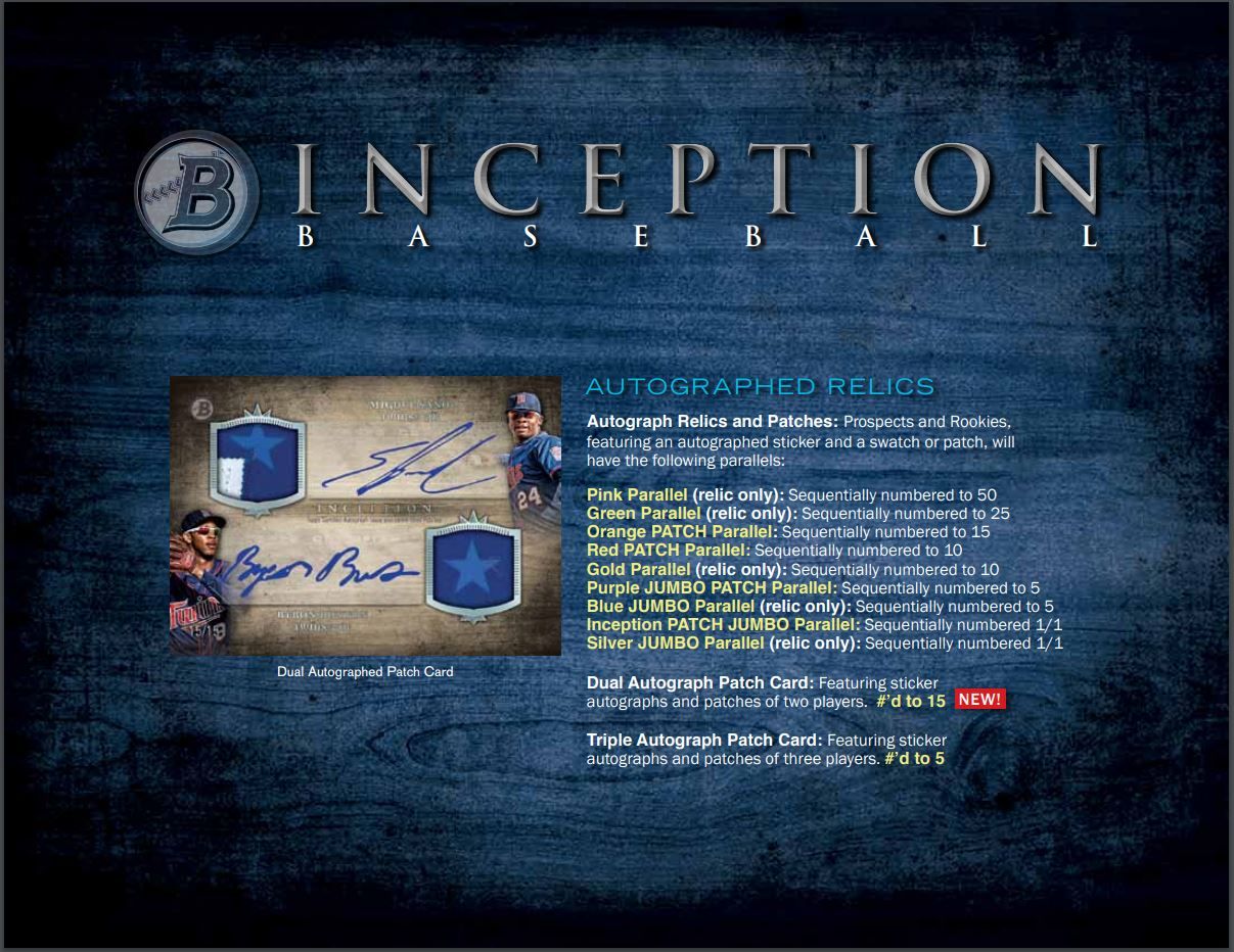 Autograph Relics and Patches: Prospects and Rookies, featuring an autographed sticker and a swatch or patch, will have the following parallels: