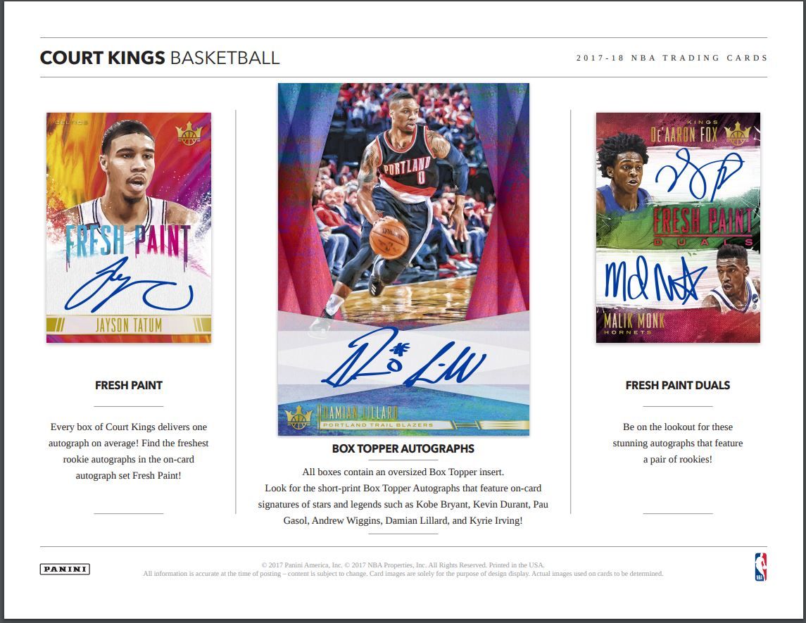 Every box of Court Kings delivers one autograph on average! Find the freshest rookie autographs in the on-card autograph set Fresh Paint!