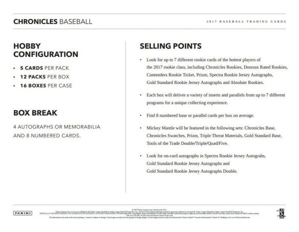 CHRONICLES BASE AND CHRONICLES ROOKIES: Chronicles centers around headlines, moments, milestones and debuts where the story starts on the card front and continues on the card back.