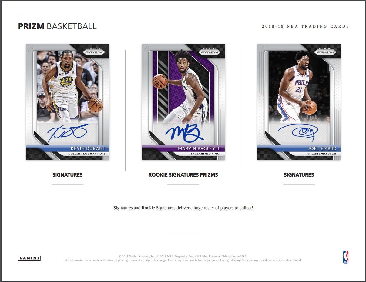 SIGNATURES/ROOKIE SIGNATURES PRIZMS/SIGNATURES:Â Signatures and Rookie Signatures deliver a huge roster of players to collect!