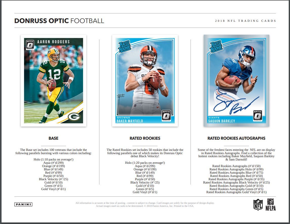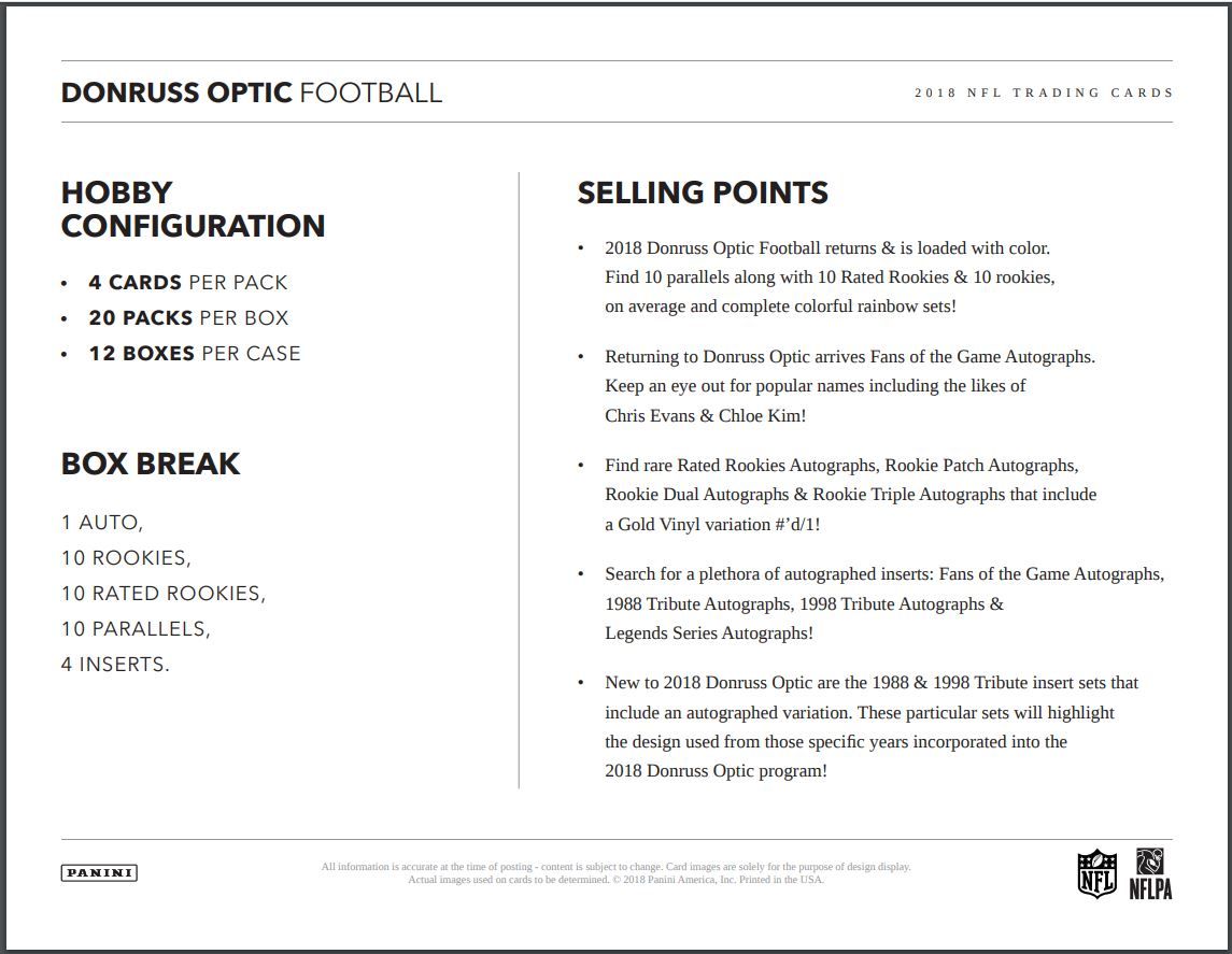 - Donruss Optic returns to impact retail for the 2018 NFL season! Find exclusive content in every SKU!