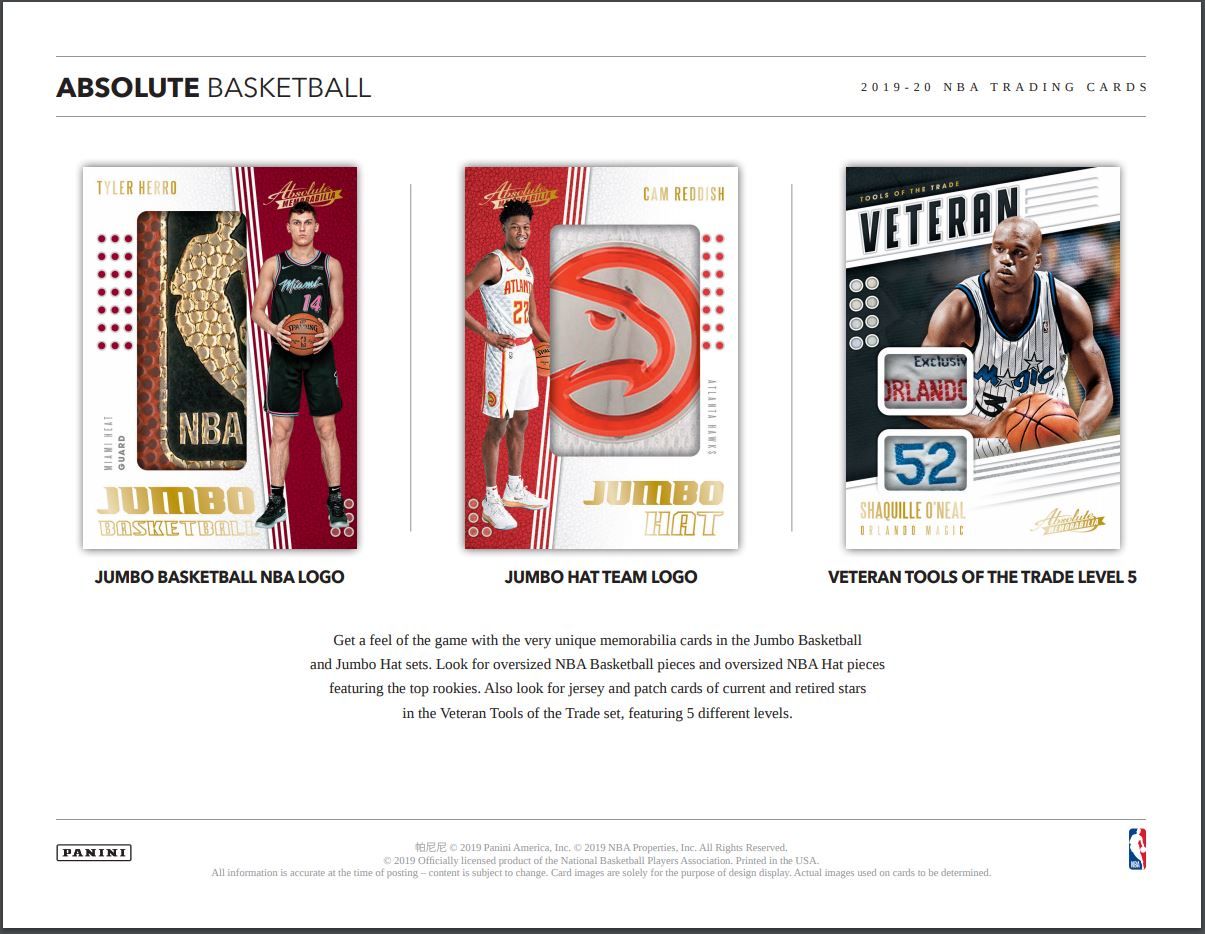 Get a feel of the game with the very unique memorabilia cards in the Jumbo Basketball and Jumbo Hat sets. Look for oversized NBA Basketball pieces and oversized NBA Hat pieces featuring the top rookies. Also look for jersey and patch cards of current and retired stars in the Veteran Tools of the Trade set, featuring 5 different levels.