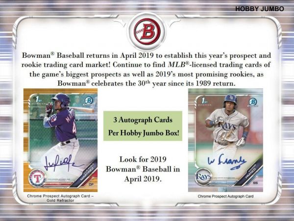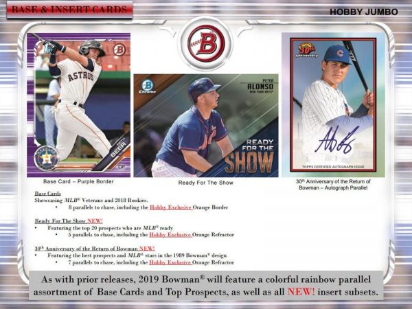 - Bowman Baseball returns in April 2019 to establish this year’s prospect and rookie trading card market! Continue to find MLB-licensed trading cards of the game’s biggest prospects as well as 2019’s most promising rookies, as Bowman celebrates the 30th year since its 1989 return.