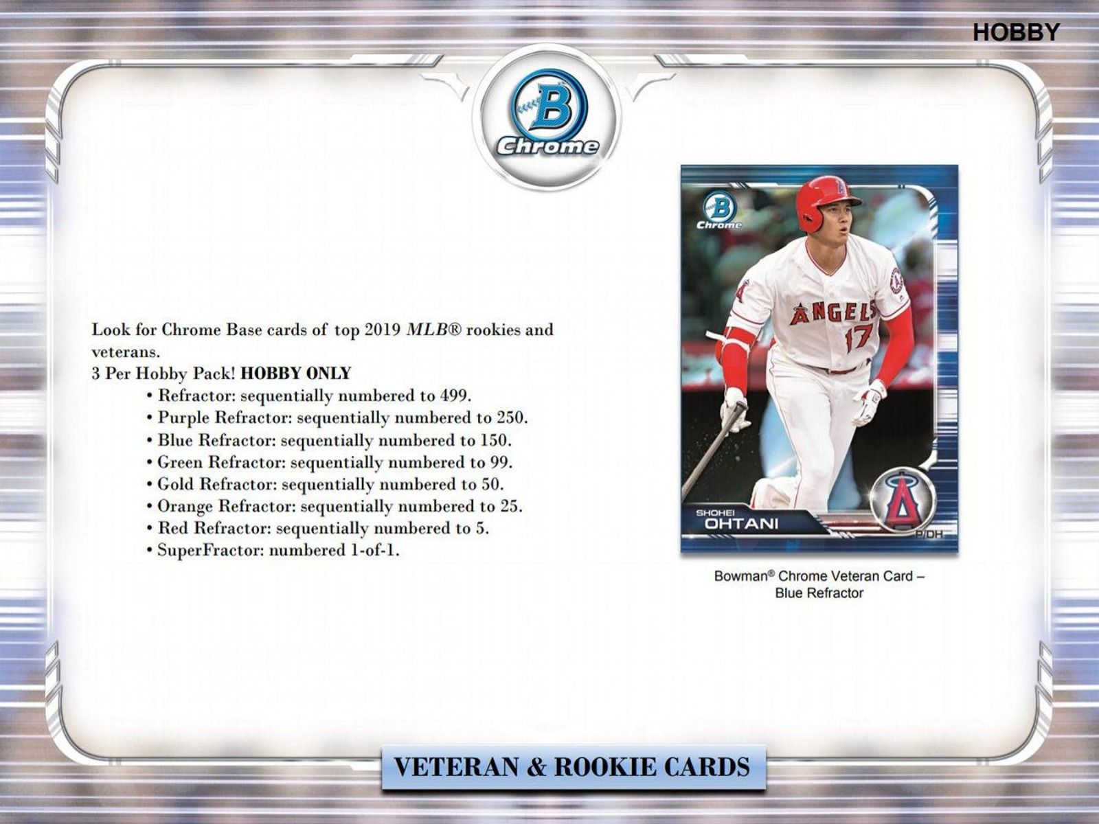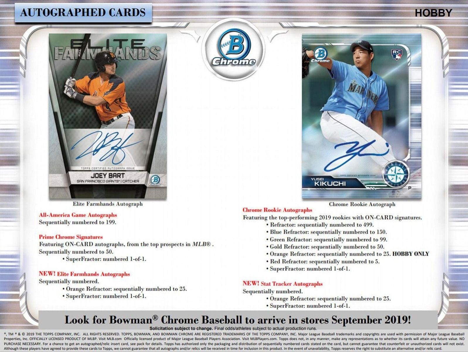 Look for Chrome Base cards of top 2019 MLB rookies and veterans. 3 Per Hobby Pack! HOBBY ONLY