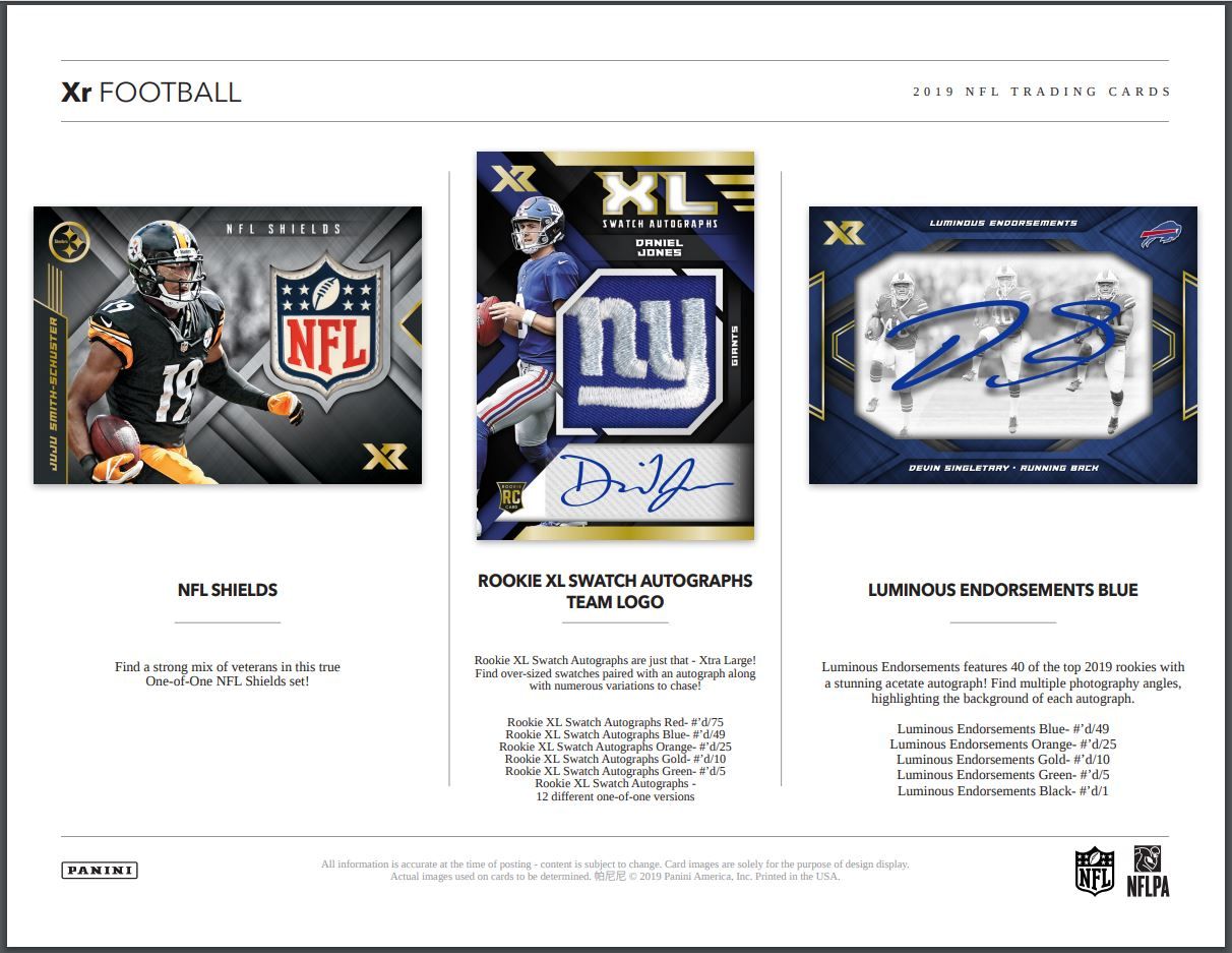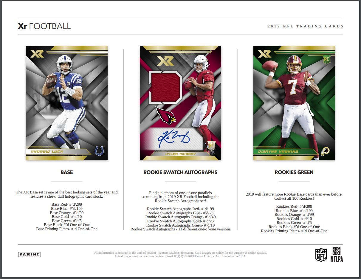 ROOKIE SWATCH AUTOGRAPHS: Find a plethora of one-of-one parallels stemming from 2019 XR Football including the